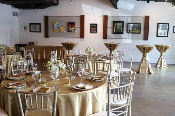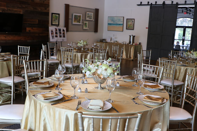 We provide Chiavari chairs, gift & dessert tables, and round tables that modestly seat about 8 guests each (varies based on your party size). For smaller gatherings long rectangle tables can be substituted in for a more intimate setting. High top pub tables are available upon request. Everything is set up for you when you walk in so all you have to do is show up! Dishes and breakdown are taken care of by us once your event has ended.